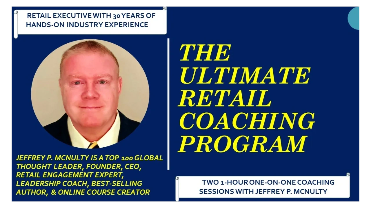 Jeffrey P. McNulty founded The Ultimate Retail Course. Mr. McNulty is a RETHINK Retail TOP Retail Expert 2025 | TOP 100 GLOBAL THOUGHT LEADER | FOUNDER | CEO | RETAIL ENGAGEMENT COACH | RETAIL EDUCATOR & TRAINER | LEADERSHIP COACH | INNOVATOR | ONLINE COURSE CREATOR | MENTOR | RETAIL EXPERT | and BEST-SELLING AUTHOR of "THE ULTIMATE RETAIL MANUAL IN 28 COUNTRIES WORLDWIDE."